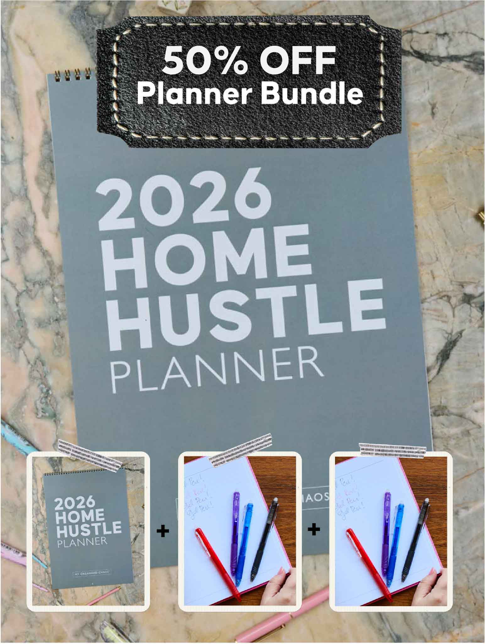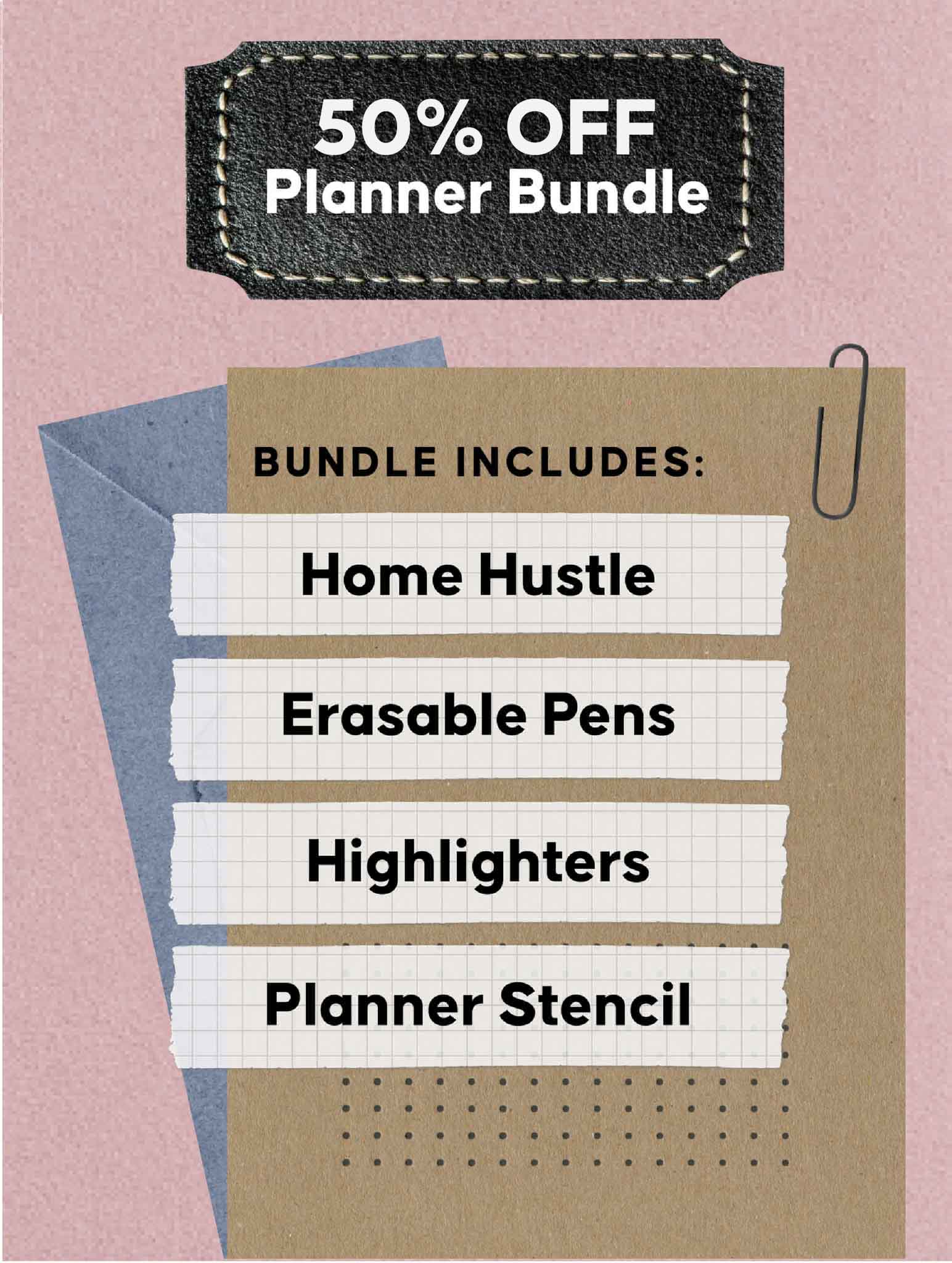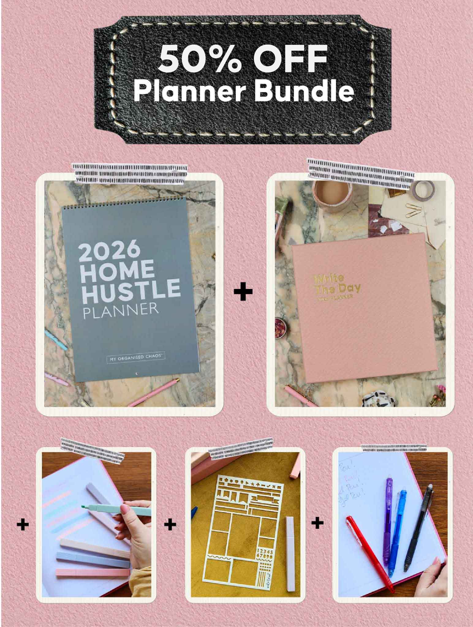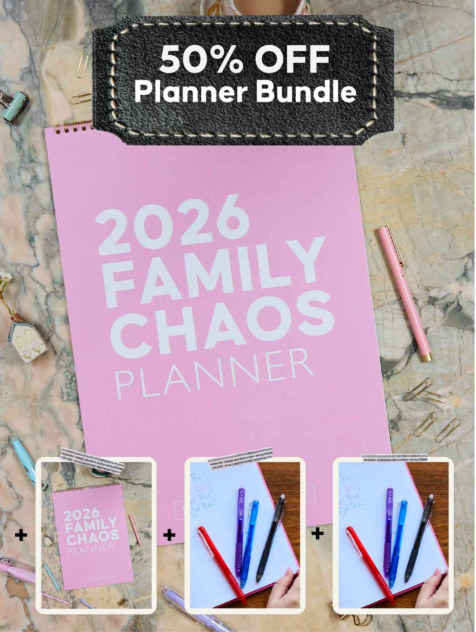 Each bundle is a little different, featuring a mix of our 2026 planners, calendars, erasable pens, gel pens, highlighters, or planner stencils - all designed to make planning simple and flexible.